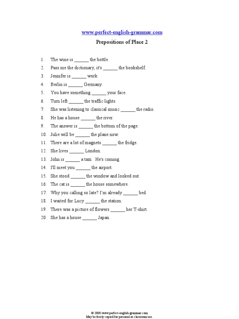 Tips mempelajari prepositions yang sulit ini adalah dengan sering melihat kamus dan sebanyak mungkin membaca literatur berbahasa. Contoh soal preposition pilihan ganda dan jawabannya. At itulah soal latihan preposition of place. Kalimat pada gambar di atas mengandung prepositional phrase inside my hose. My father went to africa in 2005. Preposition ini berfungsi untuk menunjukkan cara melakukan sesuatu. Contoh preposition of time (in, on, at, before, after, for, since) preposition of time adalah jenis kata depan yang berfungsi untuk menyatakan waktu. Berikut informasi sepenuhnya tentang contoh soal preposition of place dengan gambar. Inilah pembahasan selengkapnya mengenai contoh soal preposition of place dengan gambar. I put my glasses on the table. Preposition ini digunakan untuk menunjukkan posisi object of preposition terhadap subject atau object kalimat. Nice to see you again. Essay contest winners new careers in nursing contoh soal.